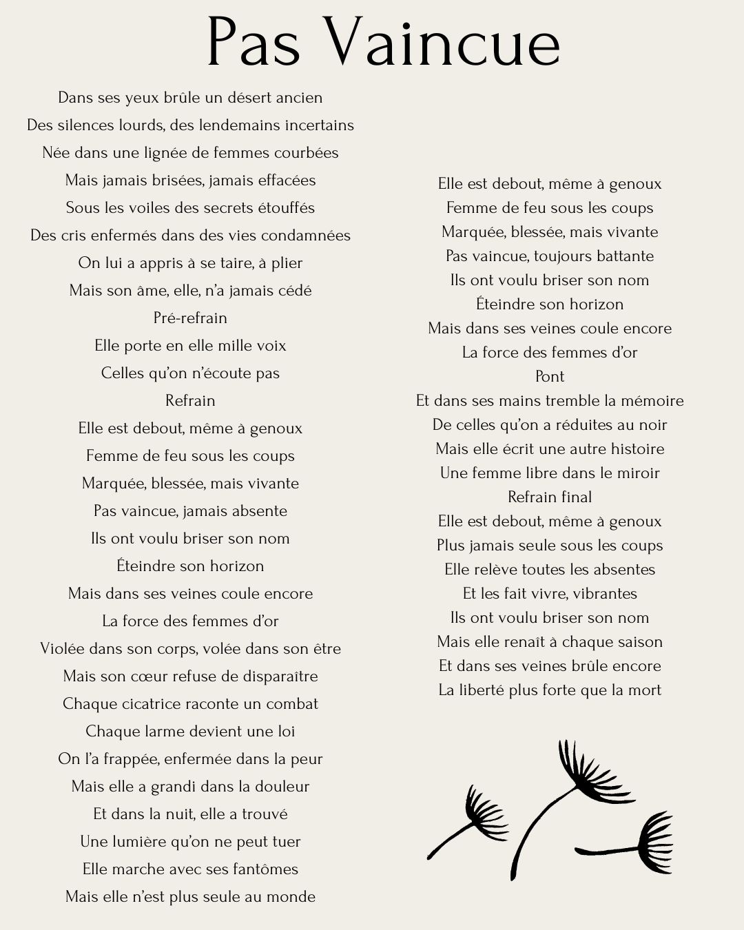 Ce chant parle de ce moment où, malgré ce qui a été traversé, quelque chose en soi reste debout.